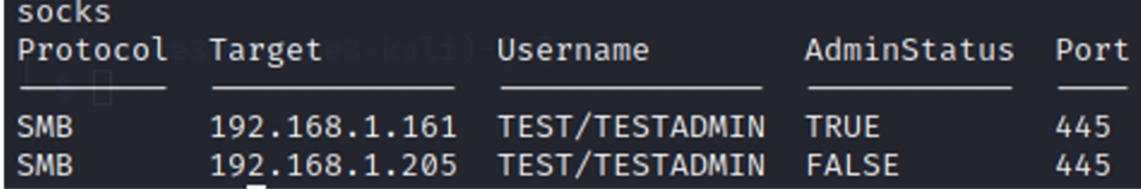 1 | impacket-ntlmrelayx -socks -smb2support -tf smb_targets.txt |