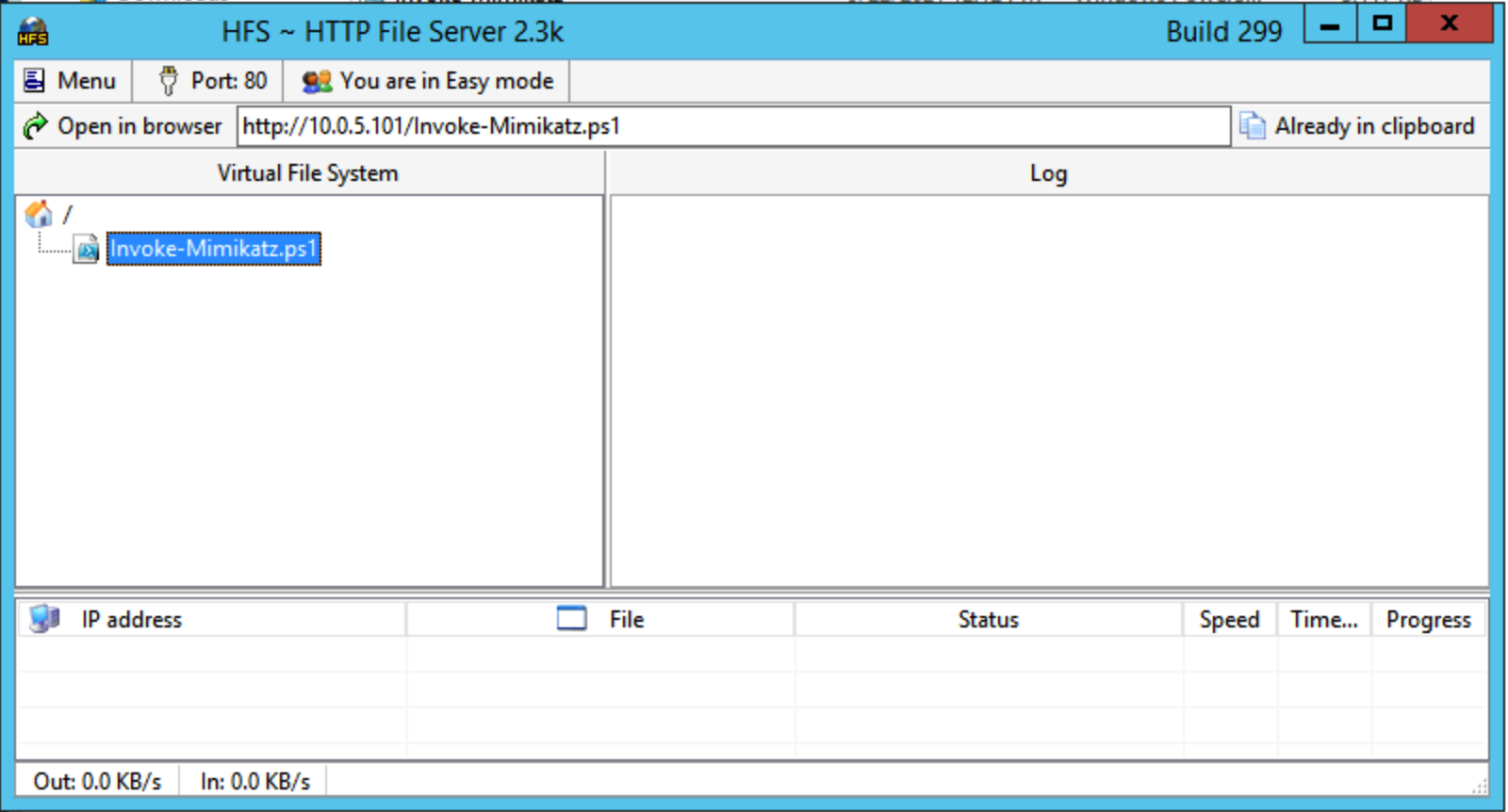 We’ll use HFS to transfer Mimikatz to the machine we’ve just accessed: