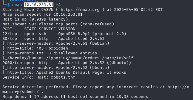 The robots.txt file reveals 3 directories. Only one of them is accessible: