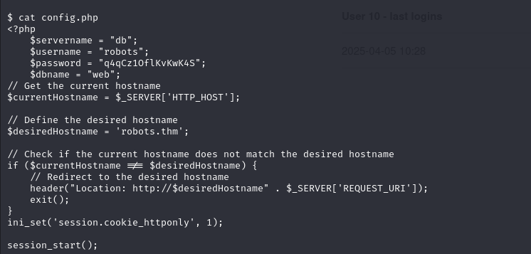 If you browse the server, you’ll find a config.php file with the identifiers of a database: