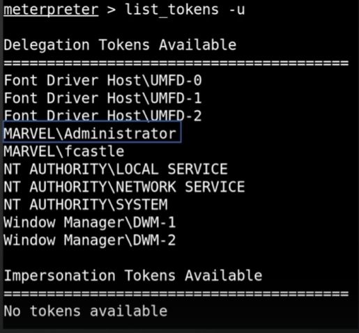 To identify a system’s tokens, after obtaining a meterpreter shell, you can use the incognito module :