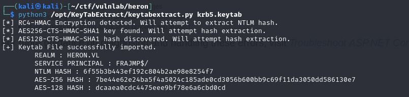 By becoming root, you can then retrieve the krb5.keytab file and recover the machine account hash with the keytabextract.py tool:
