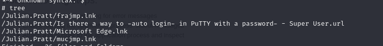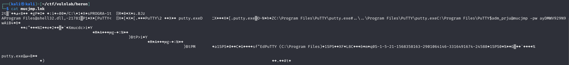 We can see that the latter seems to use the lnk files to automatically connect to Putty. So, by downloading these and displaying them, we can retrieve the password adm_prju :