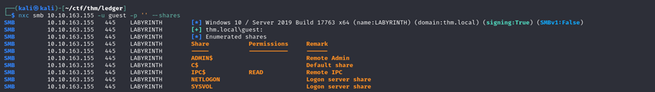Once I’d noticed that the machine was a DC, I tried to see if it was possible to retrieve information about the AD in anonymous mode or with the guest account. I saw that it was then possible that the guest account was enabled.