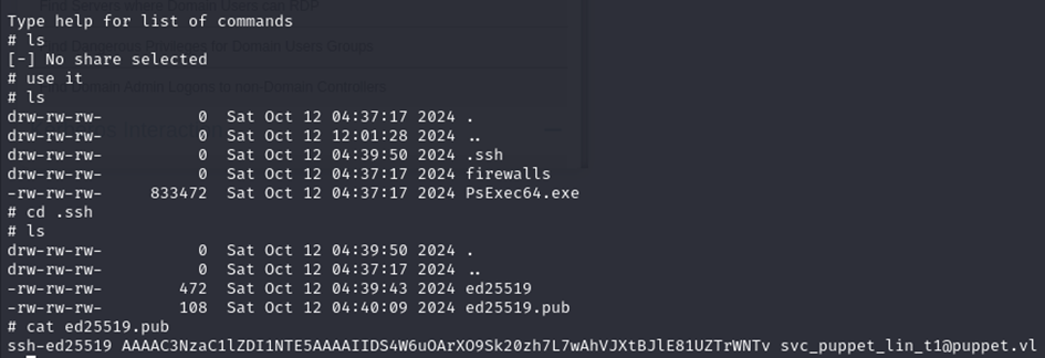 Next, using the compromised account, we can access the DC IT folder, where we can find an ssh key to access the linux server: