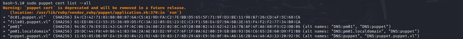 Once you’re root, list all the machines whose configuration you can manage with puppet: