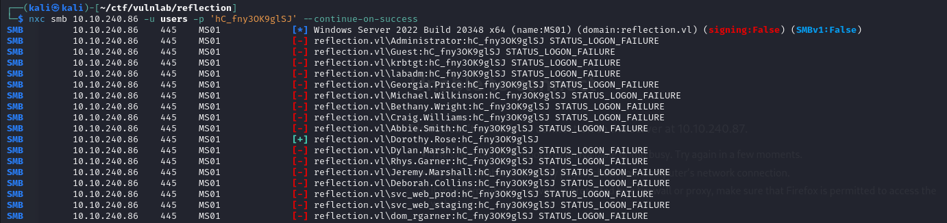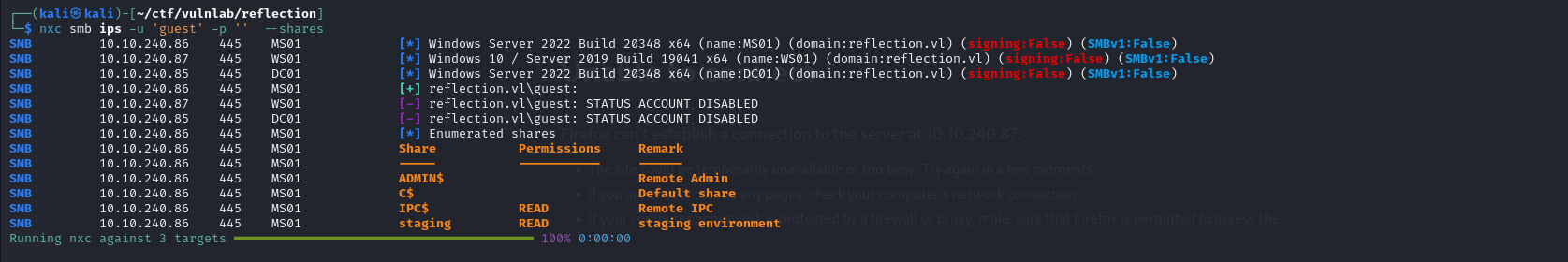 1 | └─$ impacket-smbclient reflection.vl/guest:''@10.10.240.86 |