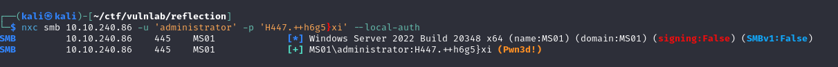 1 | ┌──(kali㉿kali)-[~/ctf/vulnlab/reflection] |