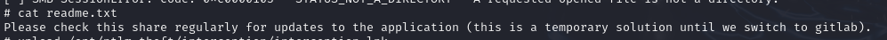 By listing shares, we can see that the dev share is regularly consulted by users.